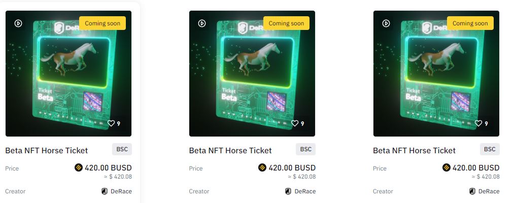 기존에 바이낸스 NFT에서 판매되었던 Beta NFT Horse Ticket의 경우 현재 4999달러가 최저가로 잡혀있습니다.