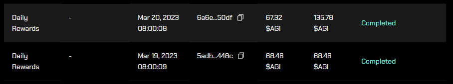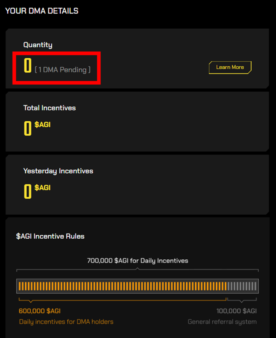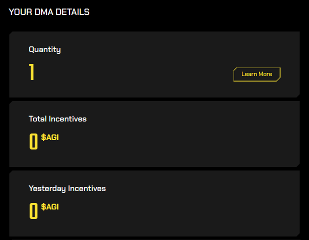 DMA를 소유하면 AGI 토큰을 일일 보상으로 얻을 수 있습니다.