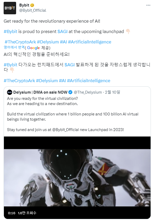 바이빗에서 델리시움(Delysium)의 코인인 AGI토큰을 런치패드에서 판매하는 것은 바이빗에 상장할 거라는 것과
