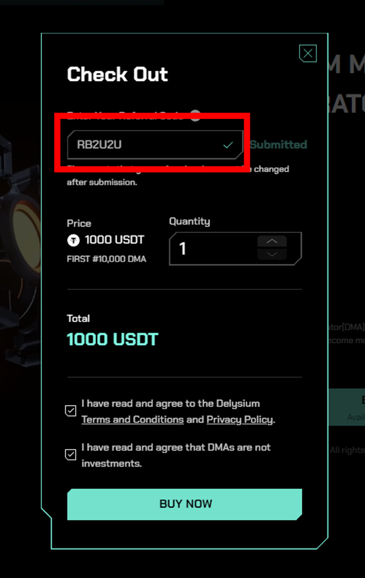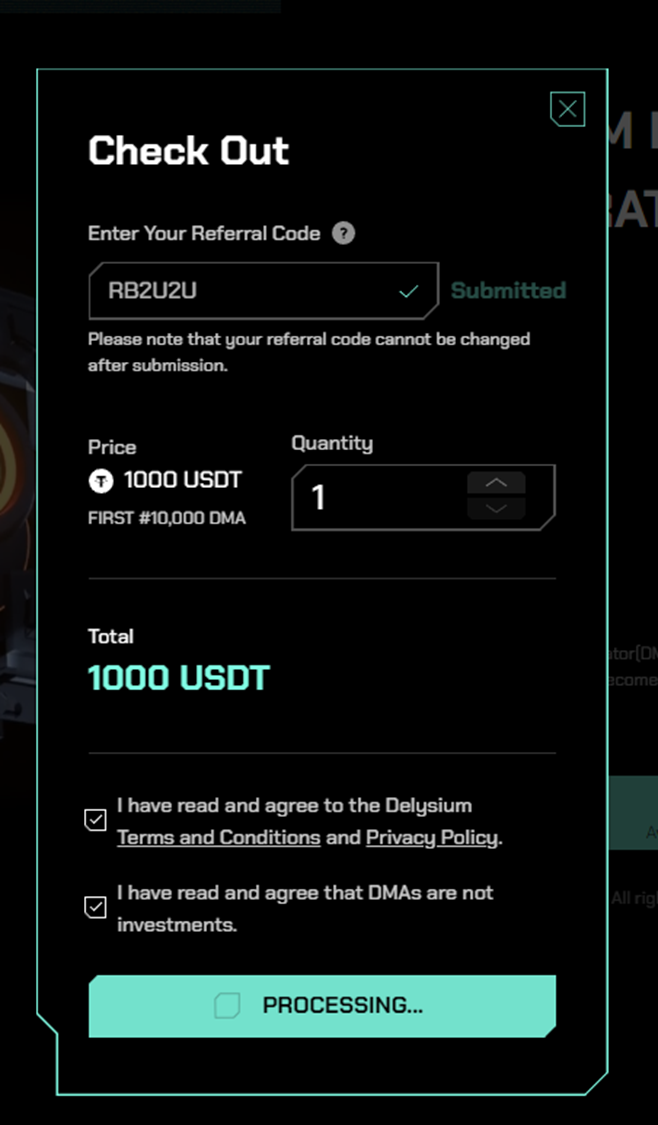 델리시움(Delysium)의 DMA는 총 5만 개이며 1만 개 까지는 1,000 달러 가격으로 구매할 수 있습니다.