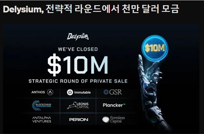 델리시움(Delysium) 전력적 라운드에서 천만 달러 모금