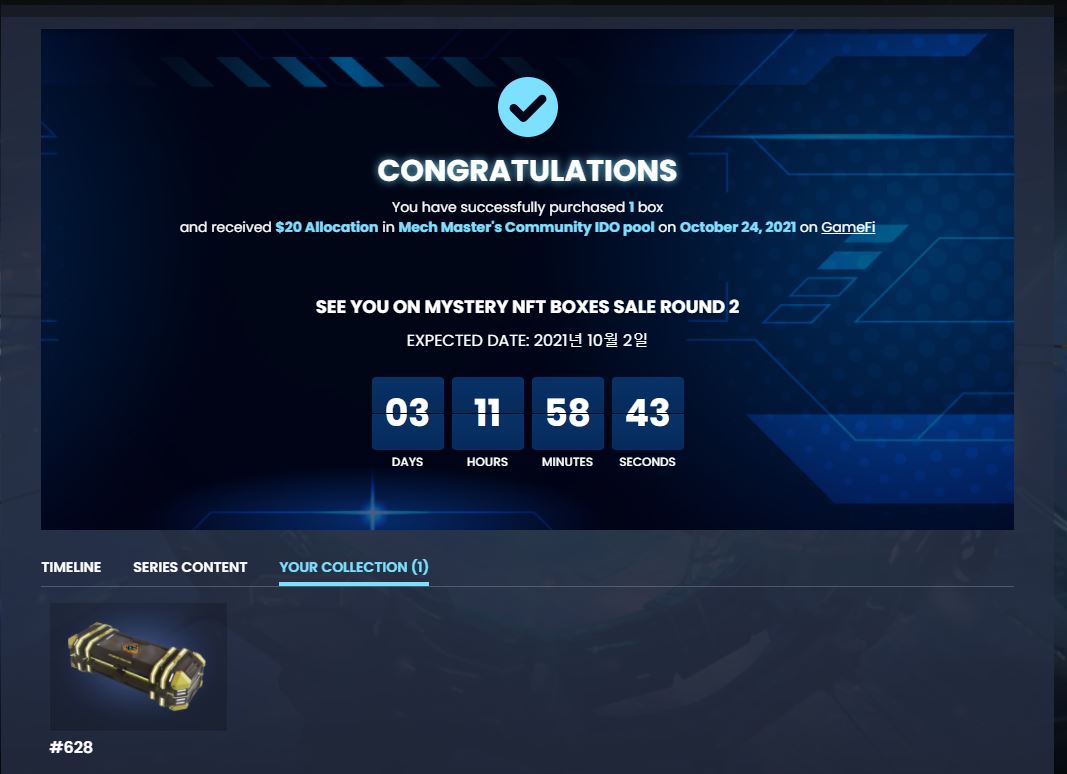 메카마스터(MechMaster) NFT 박스 구매 성공!