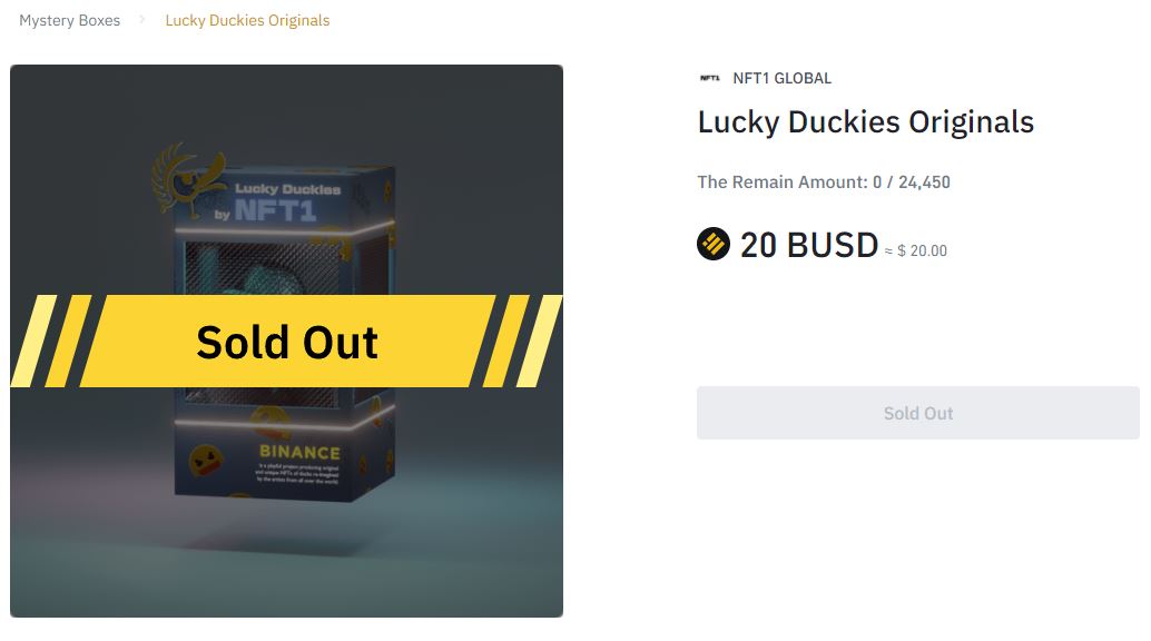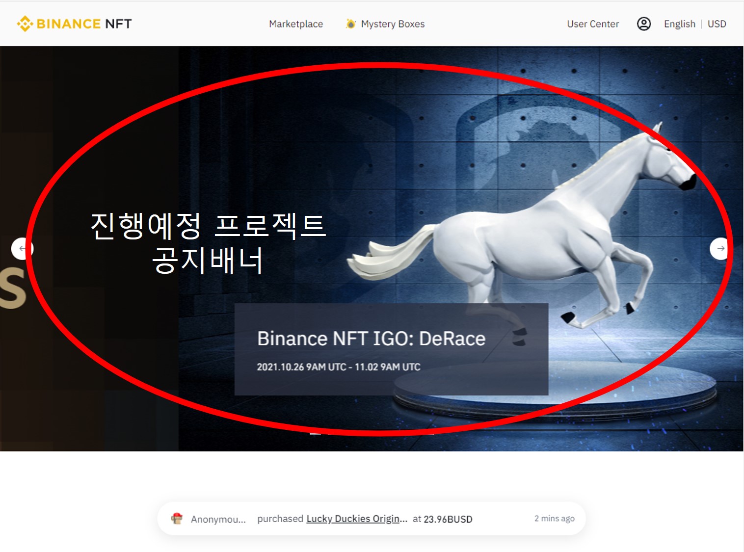 보통 바이낸스 NFT에서 판매하는 Mystery Boxes의 경우 한 페이지에서 판매가 진행됩니다.