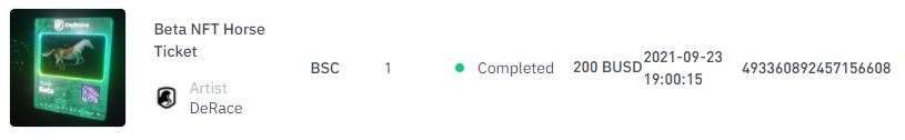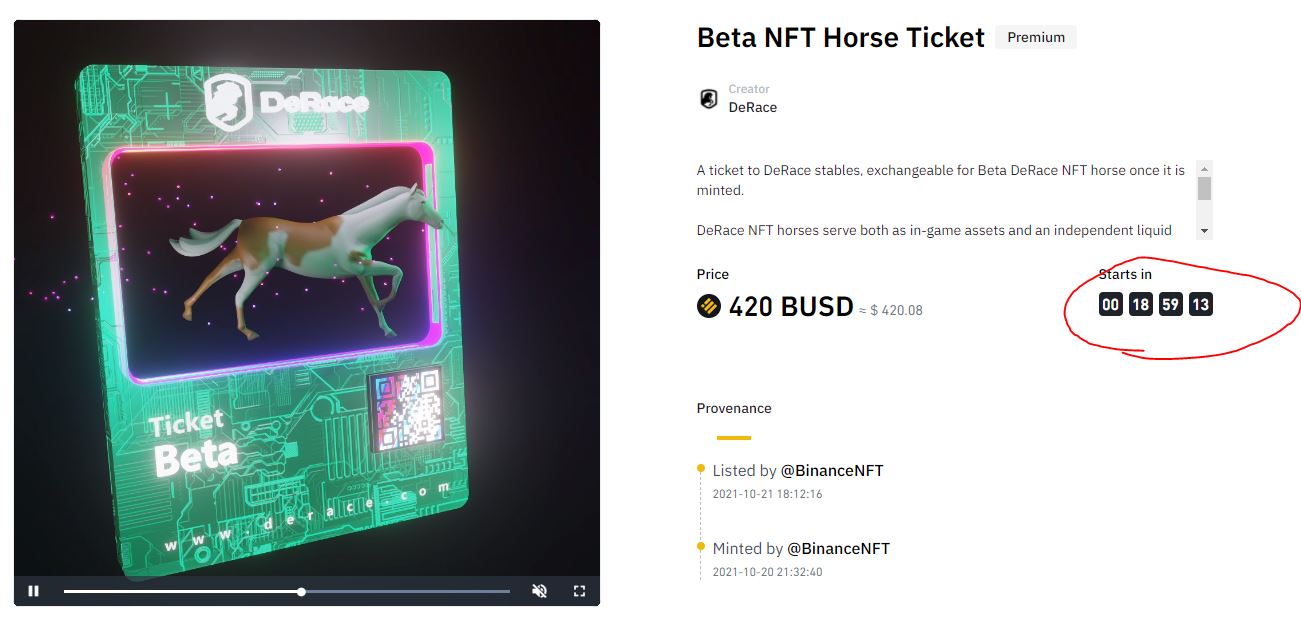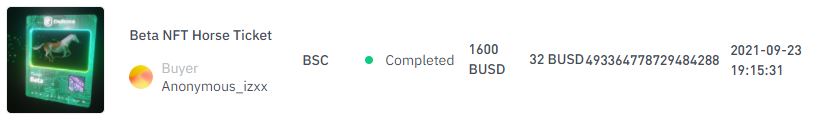 기존에 바이낸스 NFT에서 판매되었던 Beta NFT Horse Ticket의 경우 현재 4999달러가 최저가로 잡혀있습니다.