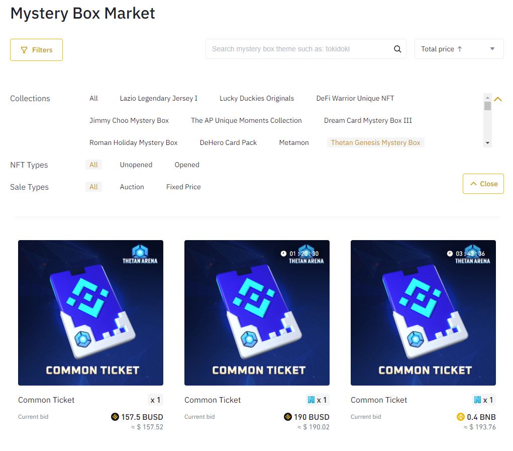 바이낸스 NFT에서 판매하는 Mystery Boxes의 경우 랜덤박스이며 오픈했을 때 나오는 NFT등급에 따라 가격이 다릅니다.