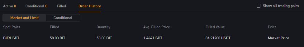 바이비트 거래소에 상장하자마자 그냥 시장가로 매도했습니다.