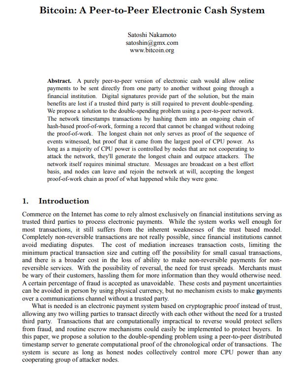 'Bitcoin: A Peer-to-Peer Electronic Cash System'