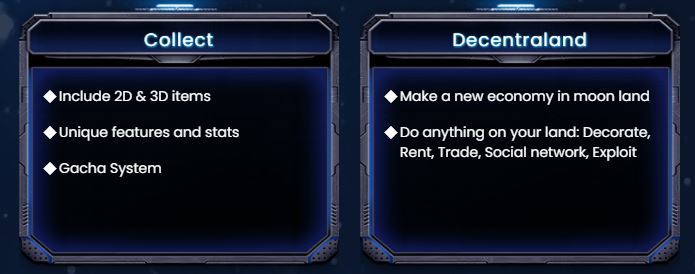 또한 달에서의 땅을 소유할 수 있으며 장식, 임대, 거래, 소셜네트워크 등 활용할 수 있습니다.