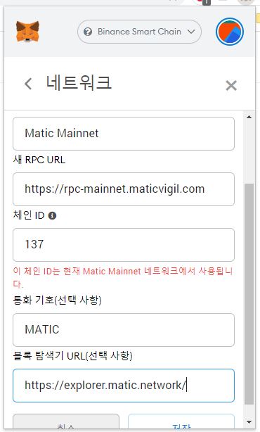 메타마스크(Metamask)에 폴리곤 매틱(Matic Mainnet) 연결