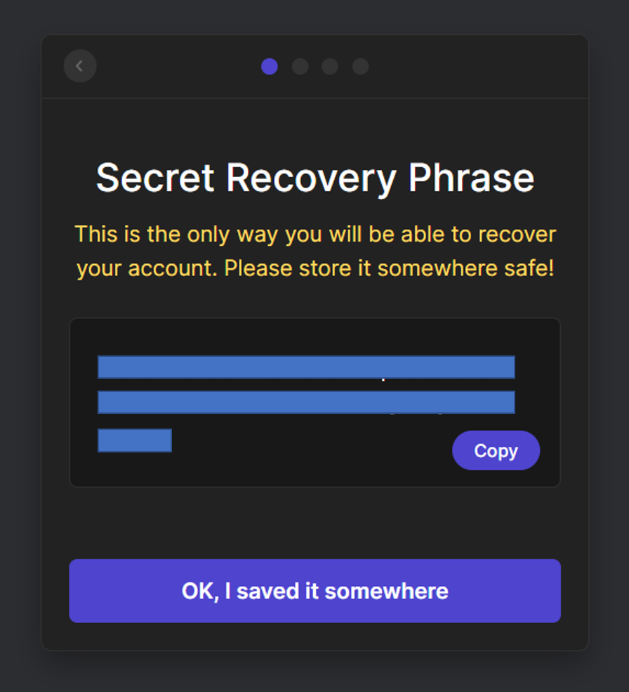 시드 구문을 정확히 적어서 잘 보관합니다.