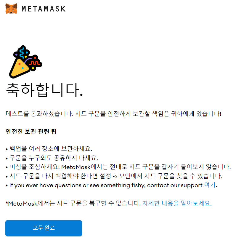 메타마스크(MetaMask)는 시드 구문만 알고 있으면 어느 컴퓨터에서든지 지갑을 가져올 수 있습니다.