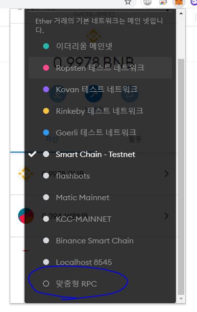 메타마스크에 테스트네트워크를 추가하시면
