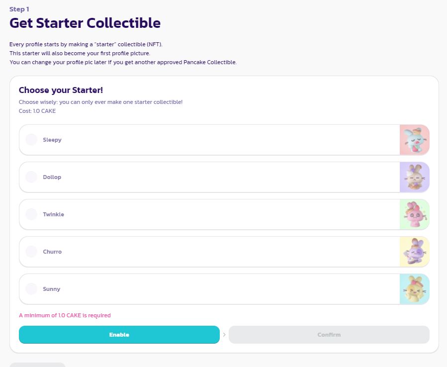 프로필을 만들기 위해서는 1.5 CAKE와 약간의 수수료가 필요합니다.