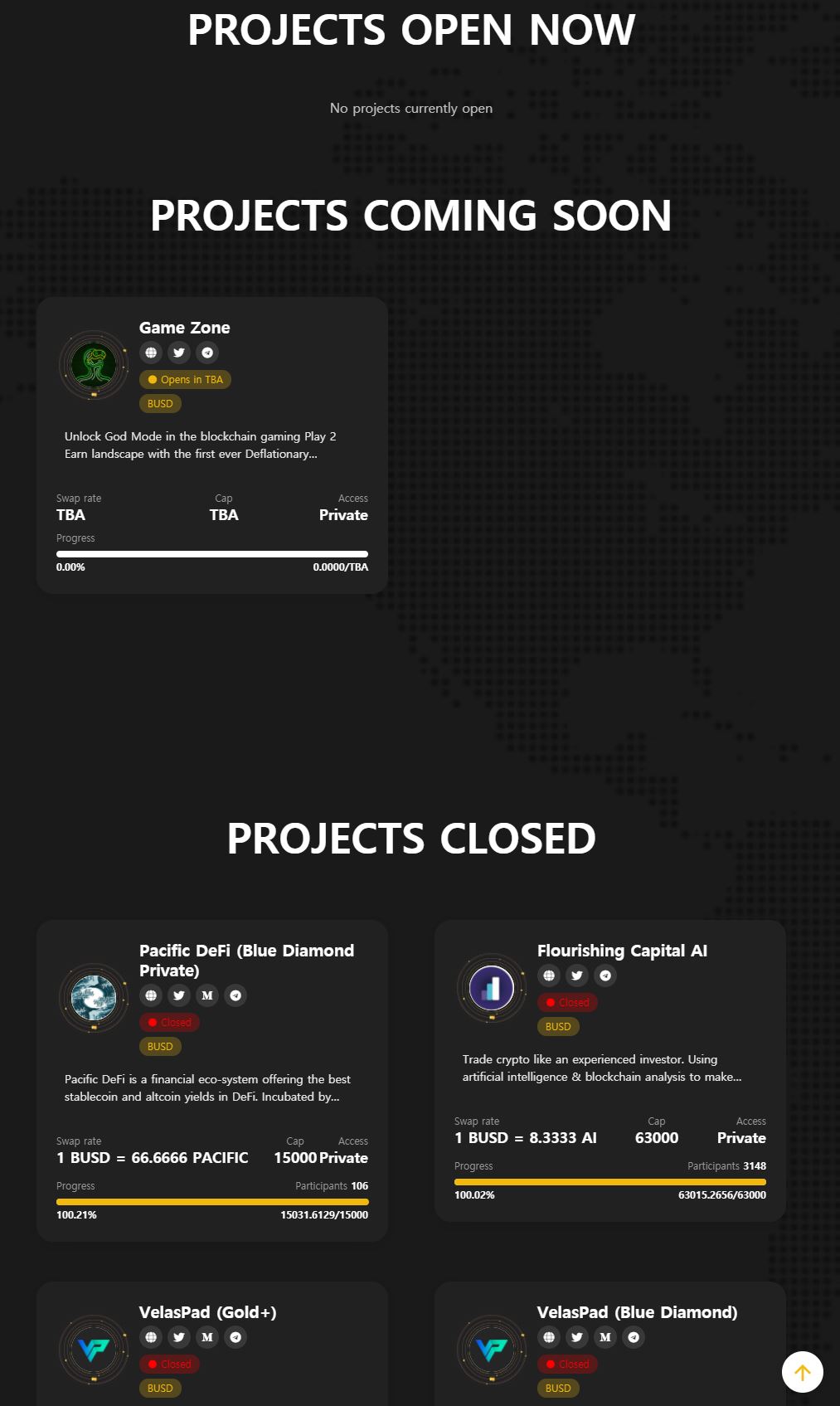 이 중 BSCPAD와 같은 종류의 코인인 VelasPad를 확인해 보겠습니다.