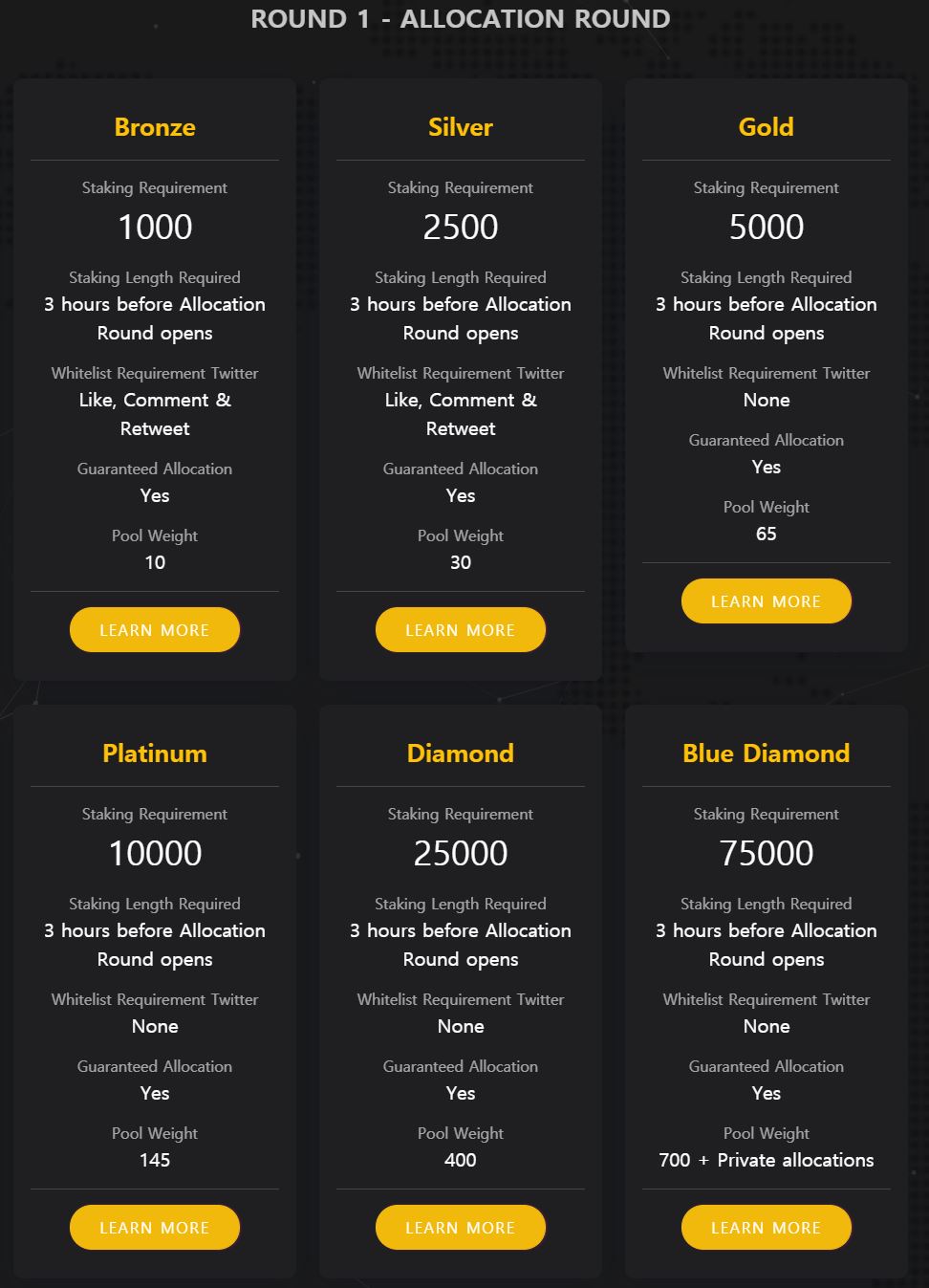 BSCPAD의 경우 총 6개의 티어가 있습니다.