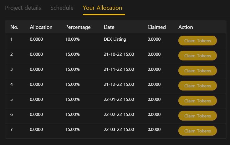 브론즈와 실버 티어는 화이트리스트를 작성해야 IDO에 참여 할 수 있습니다.