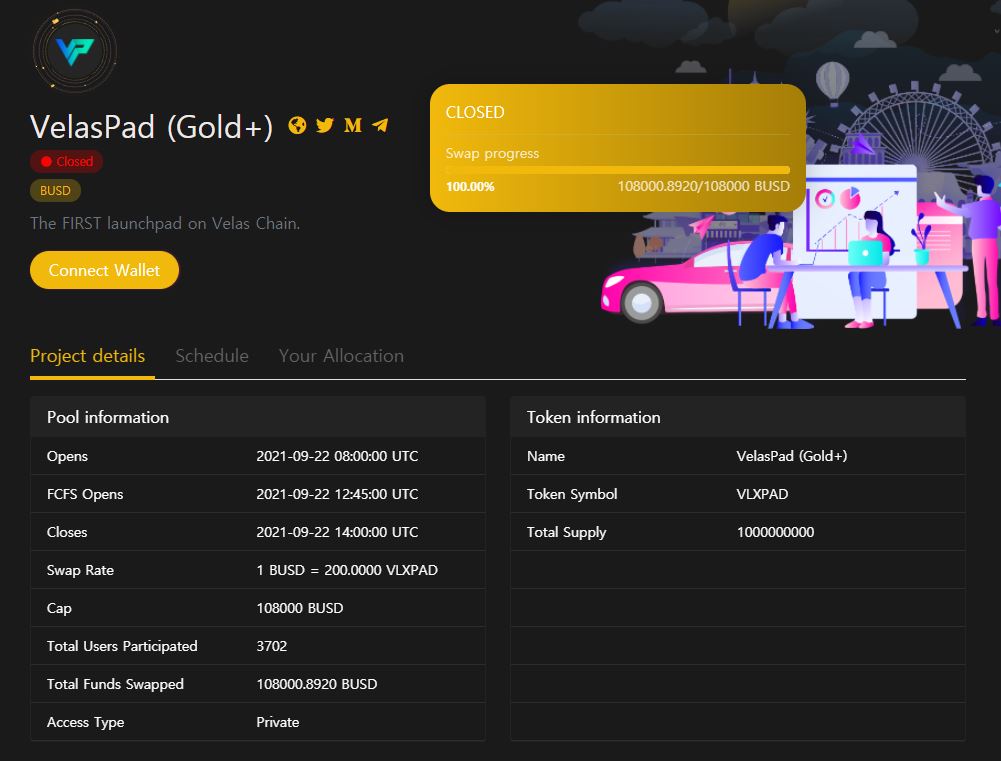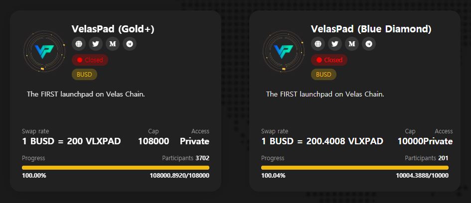 이 중 BSCPAD와 같은 종류의 코인인 VelasPad를 확인해 보겠습니다.