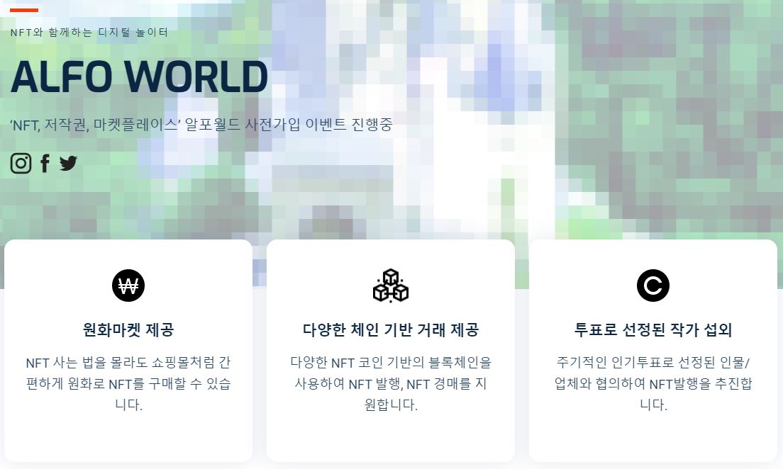 알포월드-ALFO WORLD | 원화로 쉽고 간편하게, 국내 NFT거래소