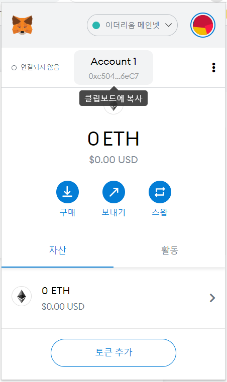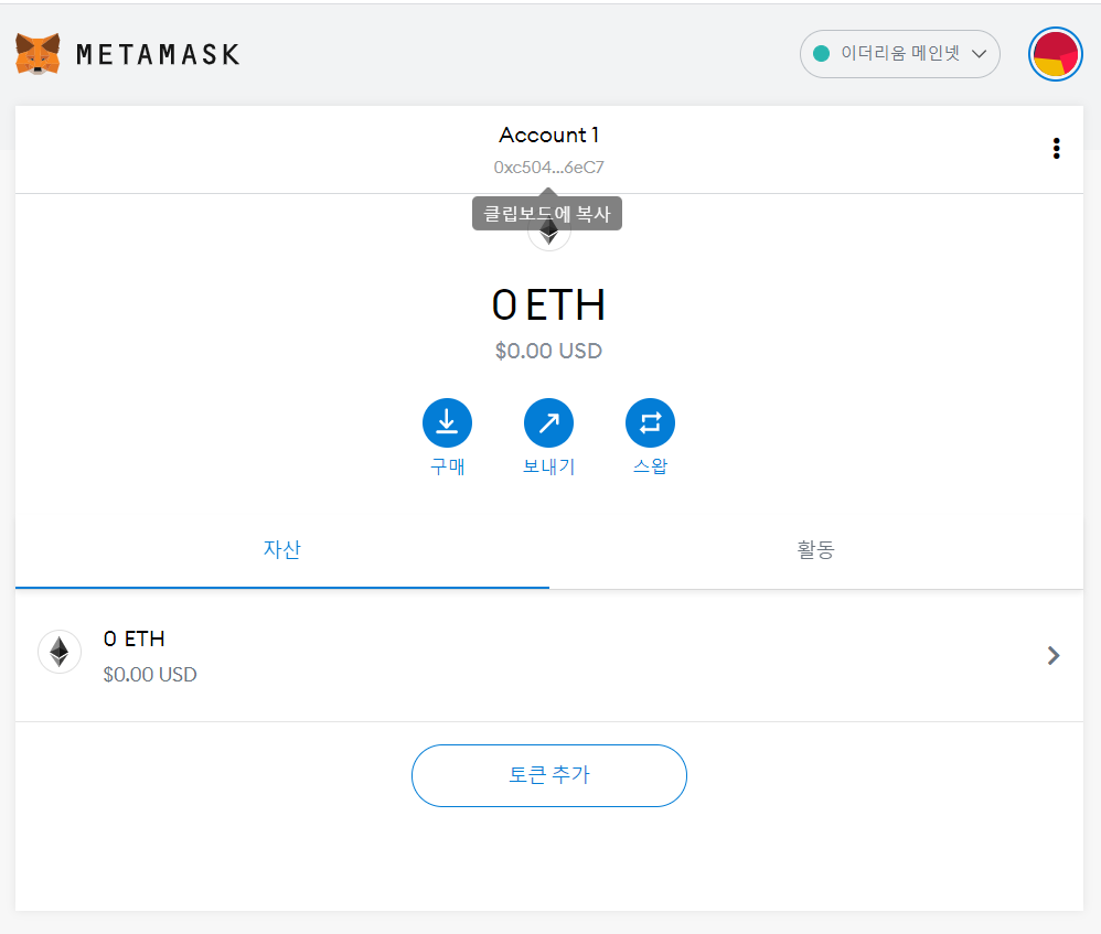 계정 이름을 누르면 지갑주소가 바로 복사되기도 합니다!