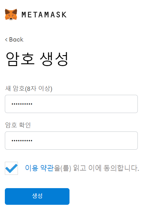 본인만의 암호를 입력하시고 생성을 누릅니다.