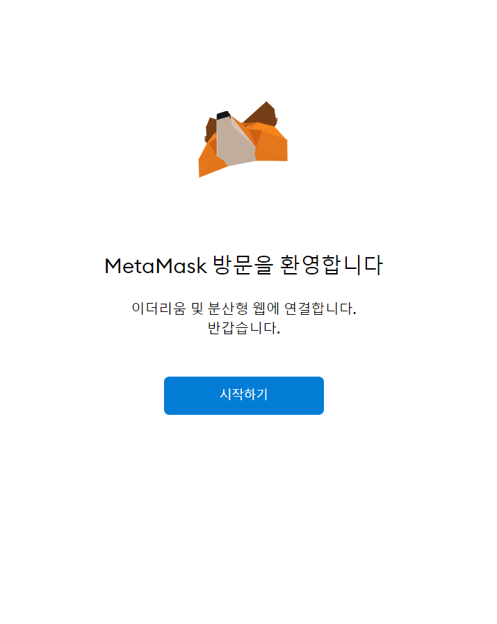 여우모양 아이콘을 누르면 메타마스크(MetaMask) 페이지로 이동하게 되는데 시작하기를 눌러줍니다.